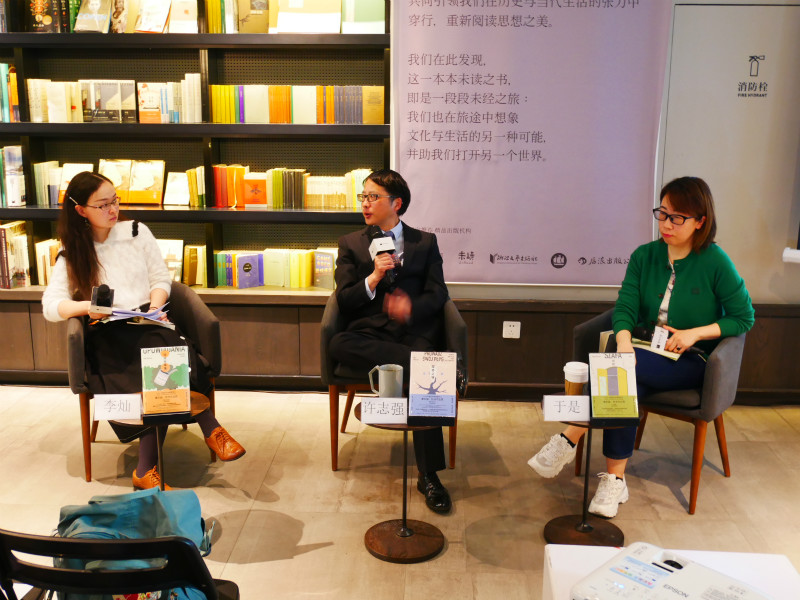 3月28日,浙江大學(xué)比較文學(xué)與世界文學(xué)研究所教授許志強(qiáng)(中),文學(xué)翻譯家、作家于是(右)與文學(xué)編輯李燦(左)做客單向空間杭州樂堤港店,就諾貝爾文學(xué)獎(jiǎng)得主托卡爾丘克新書《糜骨之壤》展開對(duì)談。