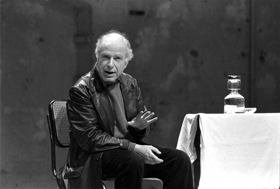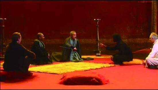 第二版是1995年的《誰在那》,布魯克此時(shí)的關(guān)注點(diǎn)轉(zhuǎn)為探尋人類的生存狀態(tài),包括人們最本質(zhì)的孤獨(dú)?!墩l在那》就是一次被定性為戲劇研究的演出,是一部關(guān)于戲劇本身的戲。在這次演出中,他把《哈姆雷特》的片段和阿爾托、布萊希特、戈登·克雷、梅耶荷德、斯坦尼斯拉夫斯基以及中世紀(jì)日本能劇大師世阿彌等世界著名戲劇實(shí)踐家和思想家的創(chuàng)作理念相結(jié)合,讓表演者作為這些導(dǎo)演的化身,讓不同的人用不同大師的思維和理念為依據(jù)處理不同的片段,六個(gè)導(dǎo)演兼理論家的著作片段是其中重要的組成部分,但《哈姆雷特》依然是最核心的文本,雖然并不是完整的版本。排練的過程一切都是開放的,沒有固定的模式和結(jié)論,因而會(huì)產(chǎn)生很多即興的元素。