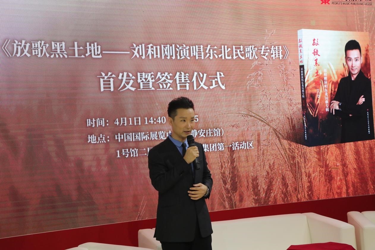 4月1日,由人民音樂出版社主辦的《放歌黑土地——劉和剛演唱東北民歌專輯》首發(fā)暨簽售儀式在中國國際會展中心舉行。中國出版集團有限公司黨組成員、副總經理陳永剛,男高音歌唱家、國家一級演員劉和剛,人民音樂出版社副總編輯杜永壽,人民音樂出版社副總經理魏振華出席活動。