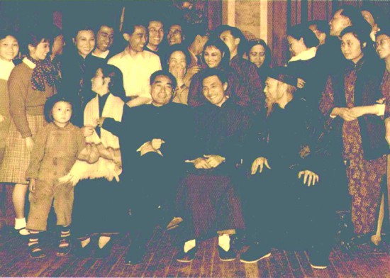 1957年周恩來總理在舞臺上和全體演職員合影
