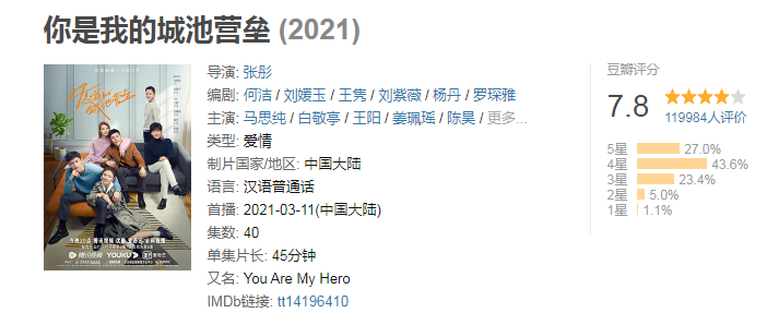 該劇于3月11日在騰訊視頻、優(yōu)酷、愛奇藝首播。播出第一周躍居豆瓣一周華語劇集榜,在微博成為熱門討論話題。收官之后目前也仍位于愛奇藝熱播榜第四名,豆瓣評分7.8分,評價人數(shù)近12萬。
