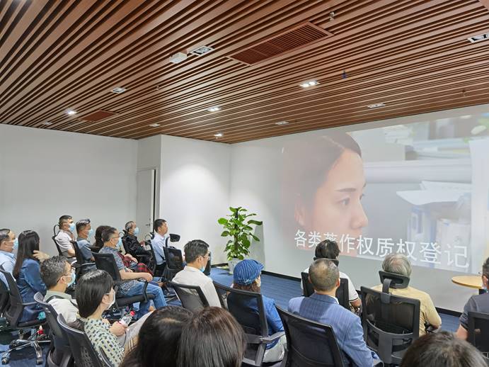 學(xué)員們在中國版權(quán)保護(hù)中心華南版權(quán)登記大廳觀摩學(xué)習(xí)