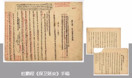 文學館征集編目部的慕津鋒主任回憶,杜鵬程對于《保衛(wèi)延安》手稿視若生命,歷經(jīng)幾十載,他都將其珍藏在身邊。在他去世后,為給這些手稿找尋最好的歸處,妻子張文彬在上世紀90年代親自來到位于西三環(huán)萬壽寺的中國現(xiàn)代文學館,向當時的負責人舒乙提出捐贈意向。很快,文學館便派了兩位同志前往西安杜鵬程家中取回《保衛(wèi)延安》等手稿。這兩位同志不久便背回了兩大捆書稿,其中以《保衛(wèi)延安》手稿最多最重,里面有《保衛(wèi)延安》的寫作大綱、人物表,有《保衛(wèi)延安》報告文學版第一稿、第二稿(一稿共3514頁,100多萬字。二稿則有1451頁),還有小說版的手稿四部(三稿270頁,四稿306頁,五稿428頁,七稿有228頁)。每一稿上都能看到作者密密麻麻的修改痕跡,正是這些修改,讓我們看到杜鵬程為這部文學作品到底付出了多少艱辛。