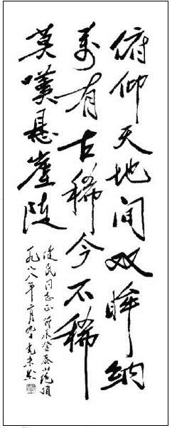條幅上,先生的字跡流利、舒展,與詩(shī)句的情緒十分相和。它成了我一件收藏珍品,偶爾有朋友來(lái)訪,我總要拿出來(lái)展示一番。自己在家,有時(shí)也展開(kāi)細(xì)細(xì)觀賞。其中詩(shī)句,給我許多鼓舞,許多啟示。
