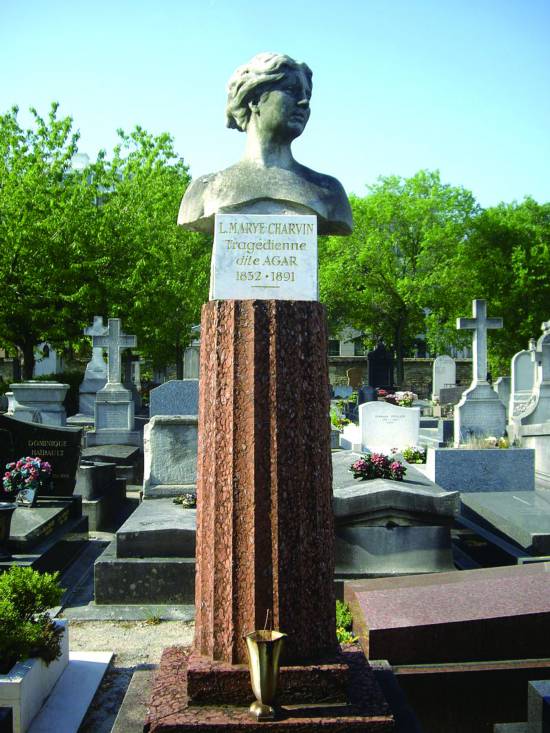 阿嘉爾現(xiàn)今安葬在巴黎蒙巴納斯墓地,墳前豎立有亨利·克洛為她精心雕塑的一尊胸像。揭幕之日,她的摯友弗朗索瓦·高貝為她念了悼亡詩(shī),稱(chēng)伊為被“不公道放逐”的“悲劇王后”。保羅·布爾熱是阿嘉爾生前好友,1871年5月,他聽(tīng)了女悲劇演員激情洋溢的詩(shī)朗誦后,在塞納河堤岸漫游,眺望遠(yuǎn)方紅旗招展,國(guó)民自衛(wèi)軍齊步向前挺進(jìn),腦中冥想阿嘉爾朗誦詩(shī)句的英姿,寫(xiě)下一首長(zhǎng)詩(shī)獻(xiàn)給她,表達(dá)內(nèi)心對(duì)她勇敢行為的崇仰。詩(shī)人深信,阿嘉爾的友愛(ài)之聲絕不會(huì)就這樣沒(méi)有回響: