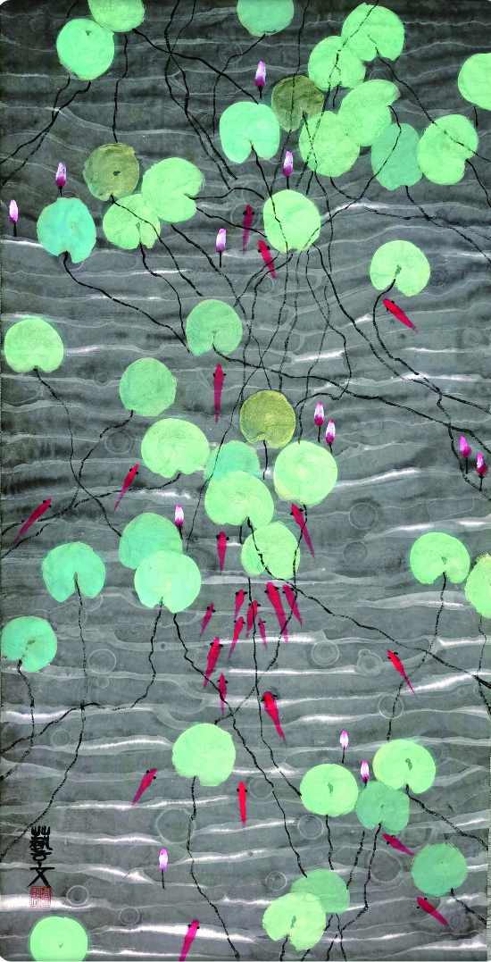 周藝文的藝術(shù),在美的沉思之下,有復(fù)雜的歷史經(jīng)驗。他并不直接傾吐歷史,沉郁也只是藏于畫面之下,他并不畫痛苦,痛苦化成了輕盈的山水,生命體驗化成了枯荷,愛化成了一尾游魚。借山水與神靈,周藝文讓畫自己開口說話。