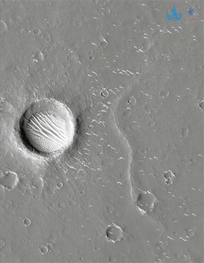 國(guó)家航天局公布的天問(wèn)一號(hào)探測(cè)器拍攝的高清火星影像圖。新華社發(fā)(國(guó)家航天局供圖)