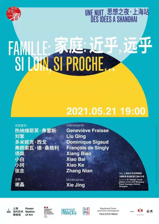 家庭和每個人的生活息息相關(guān),它可能近在咫尺,也可能遙不可及,并且一直處在變化當中。今天我們?nèi)绾谓?jīng)歷和理解家庭生活?身處不同的社會和文化,我們對家庭是否有著同樣的需要、渴望、困惑和不安?我們能否拉近距離而不受束縛,又如何面對自發(fā)的或是被迫的遠離?思想之夜活動于2016年在巴黎創(chuàng)辦。五年來,活動規(guī)模不斷壯大,每一年,在世界各地,都有許多熱情洋溢同時不怎么好對付的觀眾在同一個夜晚圍坐一隅,一個個思想界的重量級嘉賓被包圍在中間,慶祝不同文化、不同領(lǐng)域、不同代際間思想的流轉(zhuǎn)與碰撞!繼“思想之夜”于今年一月首次登陸中國大陸幾座城市之后,上海的首屆“思想之夜”于5月21日,由上海當代藝術(shù)博物館(PSA)攜手法國駐上海總領(lǐng)事館舉行。今年 “思想之夜”的全球主題是“拉近距離”(proche),其在上海的主題是“家庭:近乎,遠乎”。上海當代藝術(shù)博物館是中國最重要的當代藝術(shù)館,亦是上海雙年展的舉辦地。