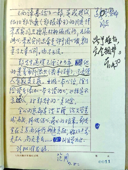 短短的審讀意見,充滿了莊嚴(yán)崇敬之感,令人讀之動(dòng)容。時(shí)任人民出版社社長的曾彥修批示曰:“此書極好,完全擁護(hù)!”