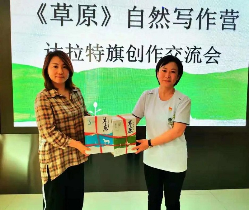 當日下午,自然寫作營的作家與達拉特旗本土作家共同走進興達陽光集團,參觀了企業(yè)黨建館,回顧黨的光輝歷程,接受了一次生動的黨史教育。之后與達旗本土作家們進行座談,就自然寫作的理解、創(chuàng)作感受等展開交流。座談中,《草原》主編及編輯表示將一如既往地關注基層作者,加大對基層作者的扶持力度,希望大家以此次自然寫作營為契機,走進廣袤的自然,從自然與生活中汲取文學創(chuàng)作營養(yǎng),多出精品。會上,內蒙古文學雜志社與達旗文聯互贈了《草原》雜志和《長河》雜志。