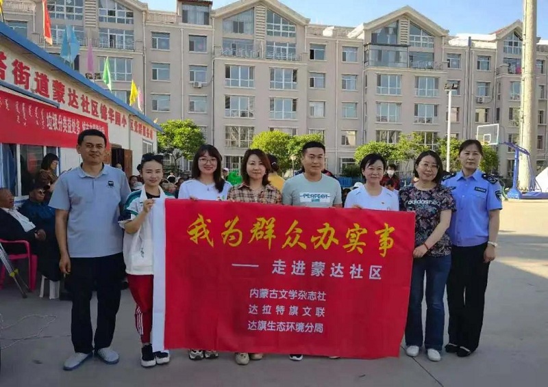 會后,自然寫作營的作家們與達拉特旗本土作家來到達拉特旗白塔街道蒙達社區(qū)錦華園小區(qū),在世界環(huán)境日即將到來之際,開展了“我為群眾辦實事——走進蒙達社區(qū)”公益活動,為小區(qū)居民講解垃圾分類知識,并對小區(qū)的垃圾進行了清理。