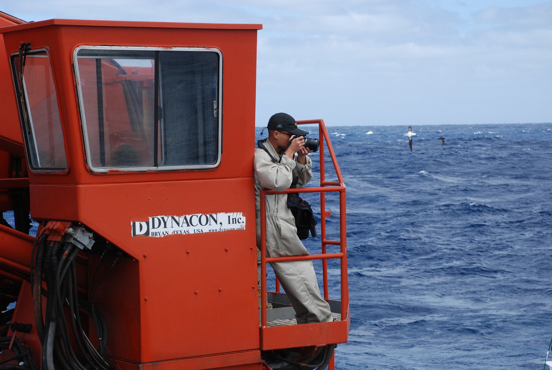 大洋一號(hào)船搭載著科考隊(duì)員在西南印度洋開展科考,作者登上船尾吊車記錄科考過程,遠(yuǎn)處的海鳥時(shí)刻注視著船邊泛起的浪花,那里時(shí)常有它們愛吃的飛魚一躍而出。