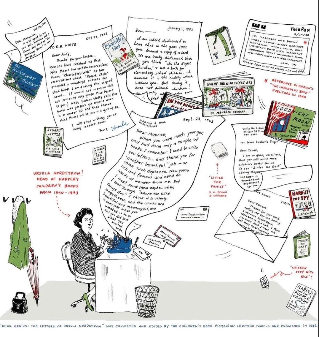 厄蘇拉就像一個(gè)尋寶人,發(fā)現(xiàn)、鼓勵(lì)、呵護(hù)著每一個(gè)才華橫溢、尊重孩子、相信童年復(fù)雜性的創(chuàng)作者。桑達(dá)克、溫格爾、瑪格麗特·懷茲·布朗、謝爾·希爾維斯坦、E.B.懷特……在厄蘇拉的幫助之下,新鮮血液們成長(zhǎng)為中堅(jiān)力量。通過(guò)新一代童書,這個(gè)國(guó)家的人們重新認(rèn)識(shí)了兒童。