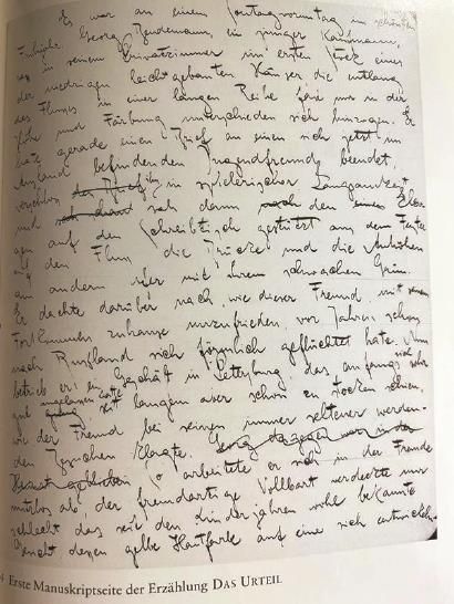 左:卡夫卡《判決》手稿第一頁(yè)