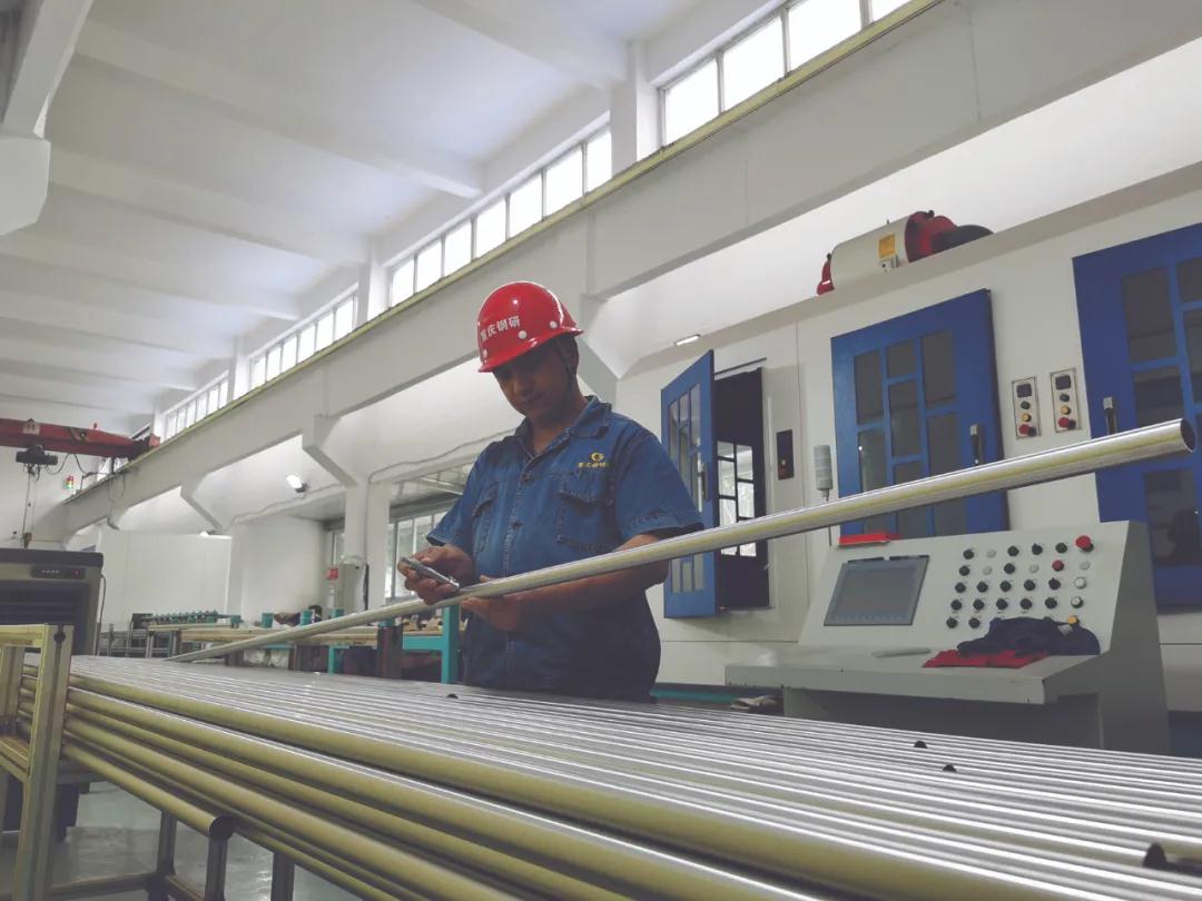 2021年“五一”長(zhǎng)假期間,經(jīng)過(guò)連續(xù)兩周陰雨天氣后,重慶氣溫一夜之隔就驟升10多攝氏度。陽(yáng)光火烈烈地?fù)湎蚪哟蟮?,屋?nèi)更加地悶熱難耐。位于大渡口建橋工業(yè)園區(qū)的重慶鋼鐵研究所有限公司(以下簡(jiǎn)稱:重慶鋼研公司)管材事業(yè)部生產(chǎn)車間正在加班加點(diǎn)趕合同。經(jīng)過(guò)前期的努力,蹇義群、何妮蔓她們手里的這批航空管產(chǎn)品已經(jīng)制作了6個(gè)道次,現(xiàn)正進(jìn)入精整階段。