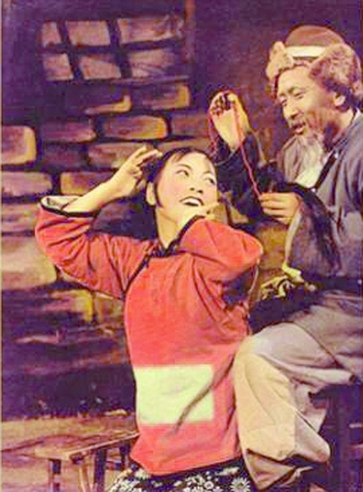 《白毛女》的演變過(guò)程中,民間藝術(shù)形式、民間倫理、政治合法性、新的民族國(guó)家“禮樂(lè)”形式等因素互相召喚和作用,一步步不斷磨煉著它的形式和內(nèi)容,在中國(guó)共產(chǎn)黨領(lǐng)導(dǎo)下的文藝實(shí)踐中,是最為令人矚目和包含豐富內(nèi)容的經(jīng)典作品?!栋酌纺哿艘淮叭嗣袼囆g(shù)家”的心血。觀眾的心目中,有本色、細(xì)膩,更接近話(huà)劇藝術(shù)的“王(昆)派”的白毛女;有倔強(qiáng)、明快、音韻優(yōu)美,更接近中國(guó)戲曲傳統(tǒng)的“郭(蘭英)派”的白毛女。《白毛女》的名字是與一系列閃亮或不閃亮的名字聯(lián)系在一起的,他們是賀敬之、丁毅、馬可、張魯、瞿維、煥之、向隅、陳紫,劉熾;他們是邵子南、周揚(yáng)、張庚、王濱、王大化、舒強(qiáng)、水華;他們是王昆、郭蘭英、陳強(qiáng)、田華、茅惠芳、石鐘琴、凌桂明、朱逢博;他們是延安魯藝食堂的大師傅;是跳上舞臺(tái)棒打扮演黃世仁演員的農(nóng)村老大娘;是臺(tái)下泣不成聲的剛剛從國(guó)民黨軍隊(duì)轉(zhuǎn)變成解放軍士兵的新戰(zhàn)士;是更多不知名的為喜兒的命運(yùn)悲哭、感動(dòng)的普通群眾。