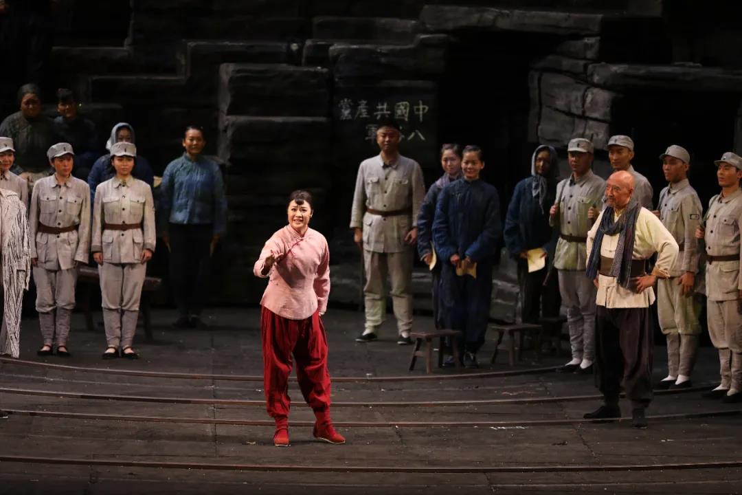 八路軍戰(zhàn)士夏荷身負重傷、懷抱孩子,一群戰(zhàn)士圍攏著她,觀眾一看便知,一場生死決別即將到來,海棠的一聲“夏荷姐”,卻沒有讓觀眾感到慌亂和悲痛,而是讓整個舞臺沉靜了,她給了觀眾一個間隙,人們得以在臺下深吸一口氣,準備好了欣賞接下來的藝術(shù)表現(xiàn)。王麗達說,這樣的表現(xiàn)方式,是經(jīng)過真聽、真看、真感受做出的選擇:“在兵荒馬亂中,海棠突然看到夏荷姐,是遇到了親人、瞬間看到了希望,等真正走近,才發(fā)現(xiàn)她遍體鱗傷,已經(jīng)不行了。夏荷接下來的一段唱,是訣別,也是托付,希望海棠能替她把孩子撫養(yǎng)長大。這是一段戲曲板腔體的詠嘆調(diào),對于女中音來說是很有挑戰(zhàn)的,我雖然是主演,但我此時是一個聆聽者,也要給夏荷的表演做鋪墊、陪襯,因為戲不是一個人的,一定是我們都在為人物、劇情付出,同時彼此給予、碰撞,才能對觀眾產(chǎn)生感染力。我要仔細傾聽她的每一句,而不是在旁邊‘演’。”王麗達說,那是夏荷犧牲前最后的表達,觀眾可能看不到海棠的什么“戲”,在外在層面,海棠可能并沒有“表演”的內(nèi)容,其實這個時候更需要真聽、真看、真感受,“尤其是夏荷唱‘沂蒙的女兒還叫沂蒙’的時候,我一定要聽進去,才會有真情實感,只有這時候我聽進去了,在最后一場把小沂蒙還給她的父親的時候,我的感情才有鋪墊,從把小沂蒙當親生女兒養(yǎng)大,到趙團長回來,告訴小沂蒙我不是她的媽媽,兩次抉擇都堅定,因為都是夏荷的托付,因為沂蒙兒女一諾千金。”