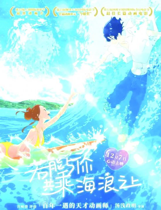 由日本動畫導(dǎo)演湯淺政明執(zhí)導(dǎo)的動畫電影《若能與你共乘海浪之上》于2019年6月21日在日本上映,并于2019年12月7日在中國大陸上映。這是一部戀愛電影,同時也是一個關(guān)于成長和互相救贖的故事。