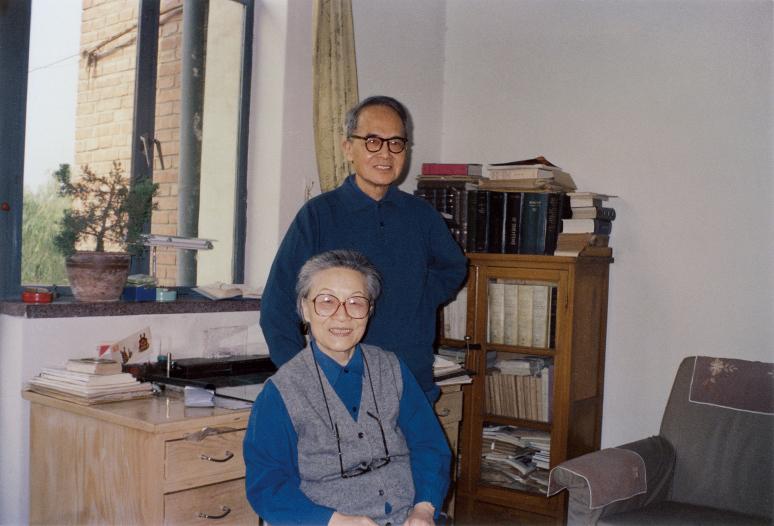 錢鍾書先生和楊絳先生在楊先生“唐詩日課”的習(xí)字桌前合影