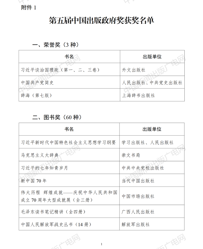 1. 第五屆中國(guó)出版政府獎(jiǎng)獲獎(jiǎng)名單