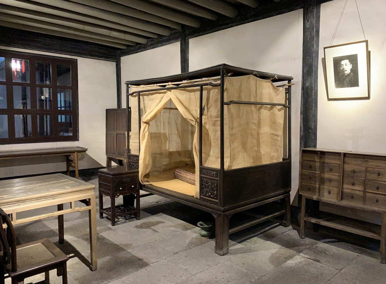 周家新臺(tái)門(mén)位于紹興城內(nèi)東昌坊口,建于清嘉慶年間,是周氏家族三個(gè)臺(tái)門(mén)中建成時(shí)間最晚的一個(gè)。1881年9月25日,魯迅出生于此,并一直生活到18歲去南京求學(xué)之前。魯迅從日本留學(xué)歸國(guó)后曾在紹興府中學(xué)堂和山會(huì)初級(jí)師范學(xué)堂擔(dān)任教職,這一期間他也居住于此。魯迅常常在這里備課、寫(xiě)作到深夜。他的第一篇文言小說(shuō)《懷舊》就是在此寫(xiě)成的。臥室里陳列著的一張鐵梨木床,系魯迅當(dāng)年睡過(guò)的原物。圖為魯迅的臥室。