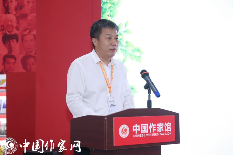 吳義勤代表中國(guó)作協(xié)致辭。他在致辭中表示,今年是中國(guó)共產(chǎn)黨成立100周年。這一百年,是中國(guó)共產(chǎn)黨團(tuán)結(jié)帶領(lǐng)中國(guó)人民,以“為有犧牲多壯志,敢教日月?lián)Q新天”的大無(wú)畏氣概,書(shū)寫中華民族幾千年歷史上最恢宏的史詩(shī)的一百年;這一百年,同時(shí)也是中國(guó)新文學(xué)與黨成長(zhǎng)壯大的歷程始終相生相伴、相互呼應(yīng),始終與黨同步、與革命同步、與時(shí)代同步、與歷史同步的一百年,更是中國(guó)文學(xué)生動(dòng)記錄、描繪黨率領(lǐng)人民不懈奮斗宏偉歷史畫(huà)卷的一百年。今年的中國(guó)作家館聚焦百年中國(guó)文學(xué)的紅色基因,就是為了全面總結(jié)新文學(xué)與黨一同成長(zhǎng)、一同進(jìn)步、一同發(fā)展的非凡歷程,形象展示新文學(xué)事業(yè)與黨的事業(yè)息息相關(guān)、共同書(shū)寫百年中國(guó)光輝篇章的歷史足跡。