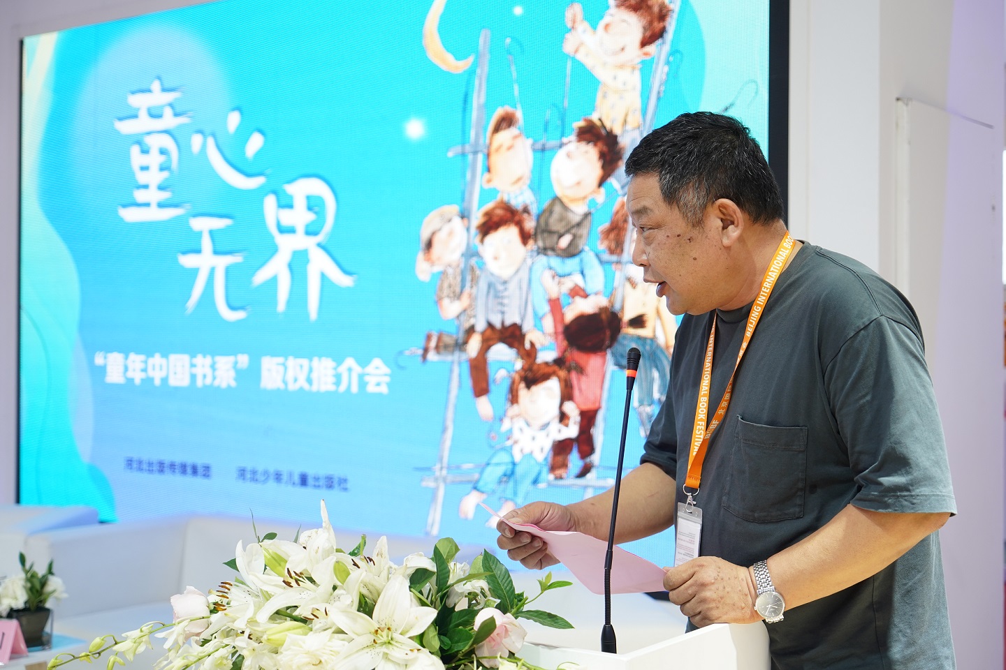 推介會(huì)上,河北少年兒童出版社社長(zhǎng)段建軍介紹了“童年中國(guó)書系”的出版情況和版權(quán)輸出情況?!巴曛袊?guó)書系”由翌平主編、冰心獎(jiǎng)獲獎(jiǎng)作家創(chuàng)作,書系從回望童年和故鄉(xiāng)的角度展現(xiàn)中國(guó)當(dāng)代社會(huì)的發(fā)展變遷。這些作品既是一個(gè)個(gè)具有個(gè)體色彩的童年故事,匯聚起來(lái)又是一幅書寫童年的中國(guó)文學(xué)地圖和社會(huì)文化長(zhǎng)卷。