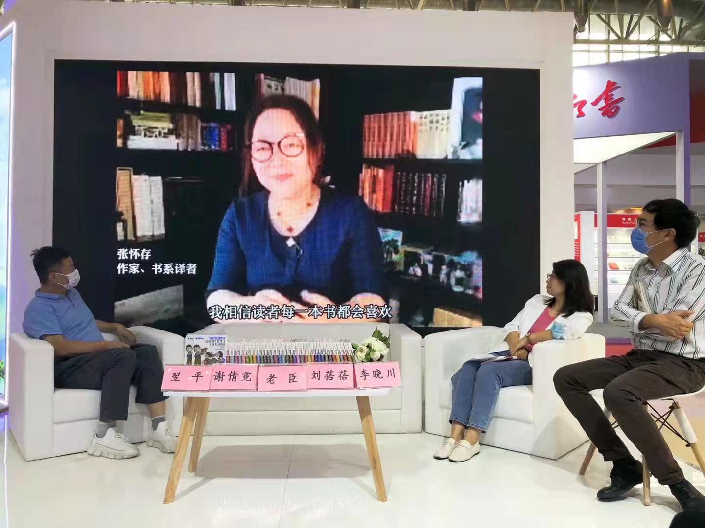 “童年中國(guó)書系”英文版圖書譯者張懷存、英國(guó)卡茲班出版社編輯Karen以視頻形式參加了推介會(huì),介紹了書系在英國(guó)編輯制作情況:《高小寶的熊時(shí)代》《我的鄰居是大象》《相遇,白樺樹(shù)》三冊(cè)圖書即將在英國(guó)印刷上市。張懷存是詩(shī)人、畫家,兒童文學(xué)作家,多年來(lái)致力于兒童文學(xué)創(chuàng)作與翻譯,并將優(yōu)秀的中國(guó)兒童文學(xué)作品推介到海外。她為“童年中國(guó)書系”版權(quán)輸出和翻譯做了大量工作。