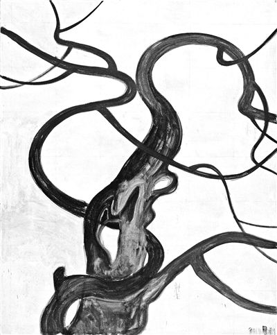 藝術(shù)家胡柳的植物樹木隱藏在她用鉛筆涂滿的整個黑色畫面中,輪廓的重要性消失了,但是卻有一種寧靜的流動感。藝術(shù)家張恩利的《老樹》系列則暗喻人的某種狀態(tài),正如藝術(shù)家所說:“‘樹’對于我而言,是一個個肖像?!?/p>