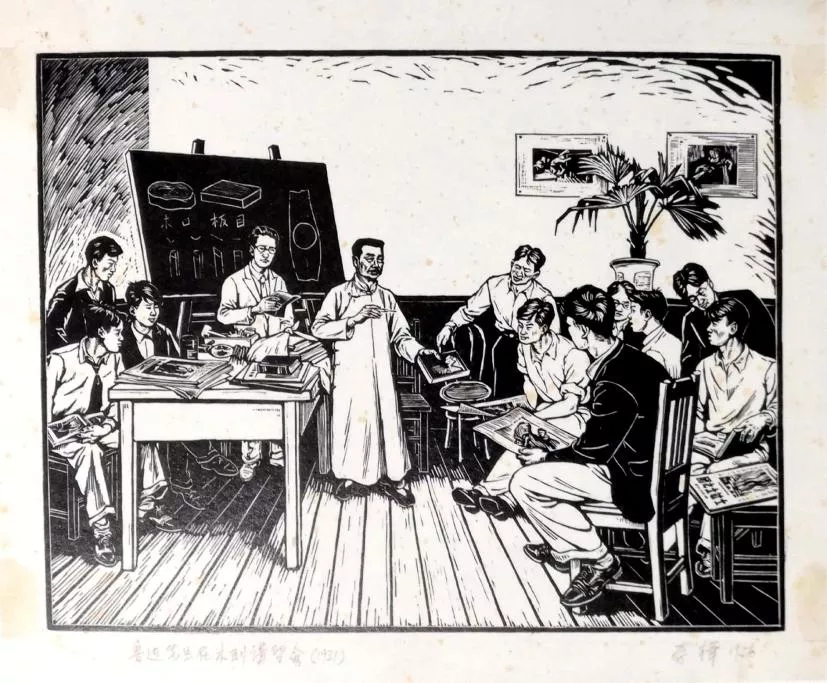 圖4 魯迅先生在木刻講習(xí)會(huì) 李樺 1956年 木刻