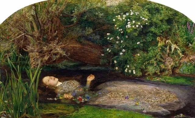 今年七月,浦東美術(shù)館正式開館,展出了不少名作,其中包括前拉斐爾派畫家米萊斯(John Everett Millais)的代表作《奧菲利亞》?!秺W菲利亞》是畫家從《哈姆雷特》故事中截取的一個(gè)畫面,描述了奧菲利亞瘋癲之后不幸落水溺亡的情景。劇中是這樣描寫的:
