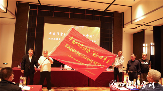 開(kāi)班儀式上,還舉行了授旗儀式,邱華棟向作家代表分別授旗。