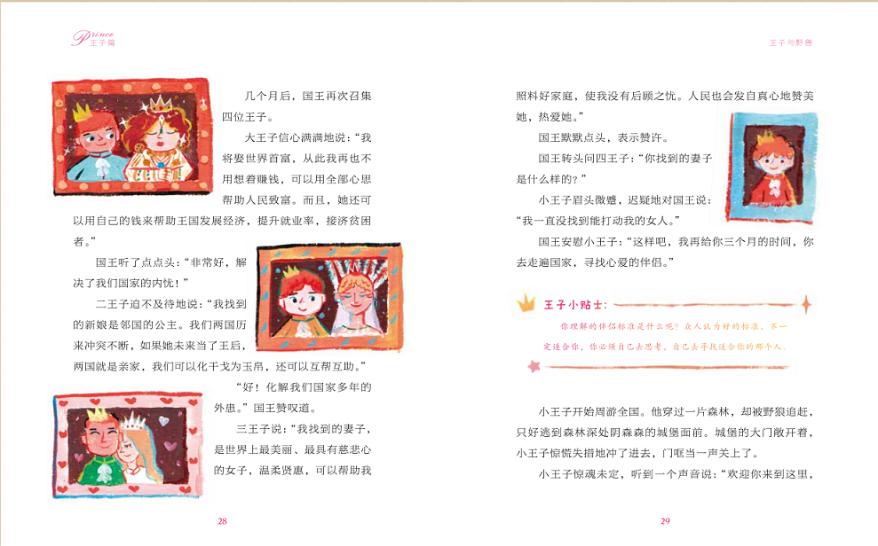 中國作家網(wǎng)記者:我注意到,這本書分為“公主篇”和“王子篇”,這樣的設計很有意思,能談談您的想法嗎?如果是男孩子的家長買了這本書,引導孩子看完“王子篇”后,是不是也看看“公主篇”?(反之亦然)