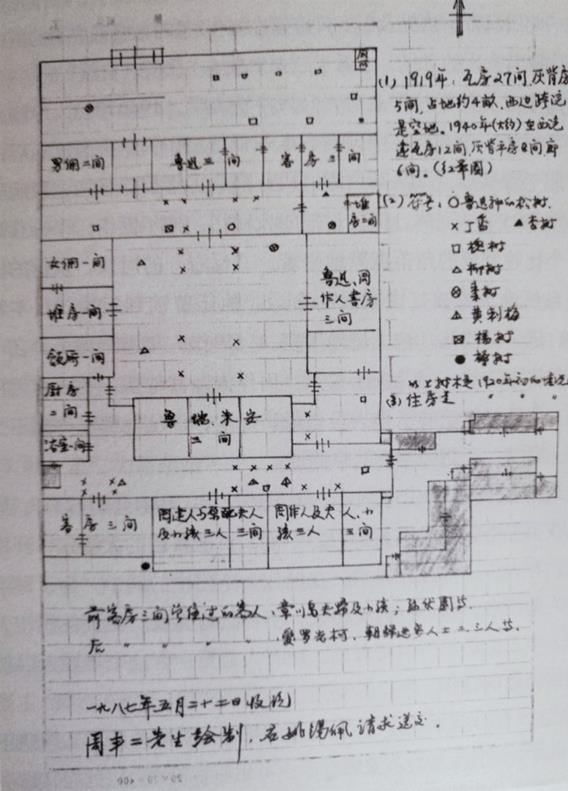 4、東廂房。南邊的一間住女傭、中間的一間做堆房、北邊的一間做飯所(飯廳)。上面談到,東西廂房的北側(cè)山墻上各辟一門(mén),故而門(mén)的朝向必然是第三進(jìn),也就是后院。因此吃飯必須要穿過(guò)東邊的門(mén)道,換句話說(shuō)是進(jìn)入后院。由于這個(gè)地理環(huán)境,兄弟參商以后,魯迅不再去后院,自然只能在自己的房子里吃飯了。魯迅在1923年7月14日的日記中這樣寫(xiě)道:“是夜始改在自室吃飯,自具一肴,此可記也?!保?0)