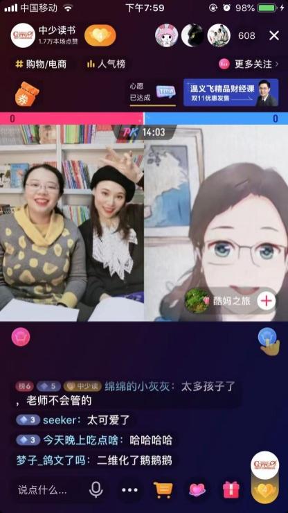 為響應(yīng)“國際反校園暴力和欺凌日”,中國少年兒童新聞出版總社有限公司(以下簡稱“中少總社”)旗下官方抖音號(hào)“中少讀書”于11月7日晚為全國小朋友們舉辦了一場主題為“保護(hù)自己,關(guān)心他人”的線上心理健康直播,本次活動(dòng)特別連線到青少年心理健康輔導(dǎo)員、心理懸疑小說“紫霧心謎”的作者晏菁,為小讀者們普及校園欺凌的防范與解決辦法,并在線上解答了不同小讀者的成長困惑。