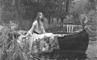 拉斐爾前派畫家沃特豪斯也畫過相同題材的作品,他描繪了夏洛特小姐不顧一切乘著小船前往城堡卡默洛特——一個貴族和騎士盤踞的地方——的場景,她要去尋找她仰慕的蘭斯洛特騎士,可是最終逃不開詛咒的她在自己的歌聲中去世。沃特豪斯的《夏洛特小姐》一經(jīng)面世便驚動了當(dāng)時的藝術(shù)界,夏洛特小姐那優(yōu)美的姿態(tài)、漂亮的面孔和畫中描繪的醉人的夢境無不被人稱贊歌頌。