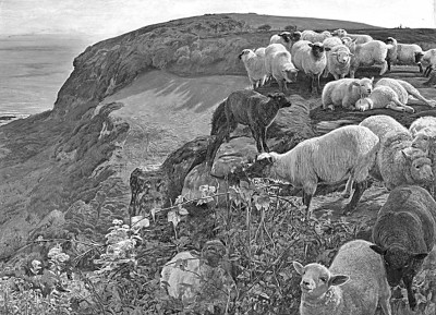 米萊斯的畫作總是透出一種濃厚的傷感情緒,這也許與畫家對不幸之人的同情和對現(xiàn)實(shí)感到無望有關(guān),而這種情緒常常被畫家寄寓在少女身上。除了《奧菲利亞》,這種傷感在其最著名的作品《盲女》中體現(xiàn)得極其深刻。畫中描繪了兩個流浪的乞丐姐妹,其中一位是盲人音樂家,她們在一場暴風(fēng)雨過后在路邊無奈休息。盲女把手風(fēng)琴放在腿上,感受著臉上陽光的溫暖,右手則摸索著一朵白色的花,為了嗅到它的芳香,她傾斜著頭,努力去發(fā)現(xiàn),努力去擷取一丁點(diǎn)兒鄉(xiāng)村的氣息。妹妹則保護(hù)著她的眼睛不受陽光的照射,看著剛剛出現(xiàn)的雙彩虹,而盲女卻看不見,這更加深了她處境的辛酸。一只玳瑁蝴蝶停在盲女的披肩上,暗示她一動不動,她脖子上掛著的牌子寫著“可憐的盲人”。