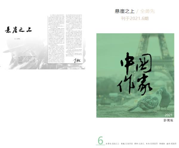 11月30日,第34屆金雞獎(jiǎng)提名名單公布,大賽經(jīng)過(guò)初選、初評(píng)兩個(gè)階段,評(píng)選產(chǎn)生出多個(gè)獎(jiǎng)項(xiàng)的提名名單。提名名單中有三部電影的劇本在《中國(guó)作家》影視版刊登發(fā)表。其中,獲最佳故事片等七項(xiàng)提名的《懸崖之上》,電影劇本在《中國(guó)作家》影視版2021年第6期頭條發(fā)表,并配發(fā)編劇全勇先的創(chuàng)作談,全勇先回憶了一部電影從劇本到電影的生成之路和關(guān)鍵要義。獲得最佳中小成本故事片提名榜首的《八步沙》,在《中國(guó)作家》影視版2019年第4期頭條刊發(fā),該影片以“時(shí)代楷?!绷蠞h為故事原型,書(shū)寫(xiě)了三代人治沙造林的感人故事?!吨袊?guó)作家》雜志全程參與了《八步沙》從文本到影片的全部制作過(guò)程,是影片《八步沙》的聯(lián)合出品單位。獲最佳導(dǎo)演提名的影片《沒(méi)有過(guò)不去的年》發(fā)表于《中國(guó)作家》影視版2021年第3期,并組織策劃了一組編劇與評(píng)論家對(duì)話(huà)的文章,從文本的立場(chǎng)闡釋劇情故事的多重表達(dá)和文化內(nèi)涵。