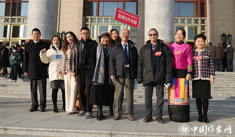 港澳臺(tái)代表團(tuán)及中國(guó)作協(xié)外聯(lián)部工作人員在大會(huì)堂前合影