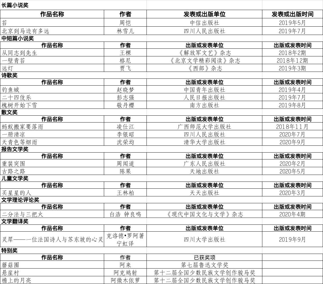 第十屆四川文學(xué)獎(jiǎng)獲獎(jiǎng)作品名單