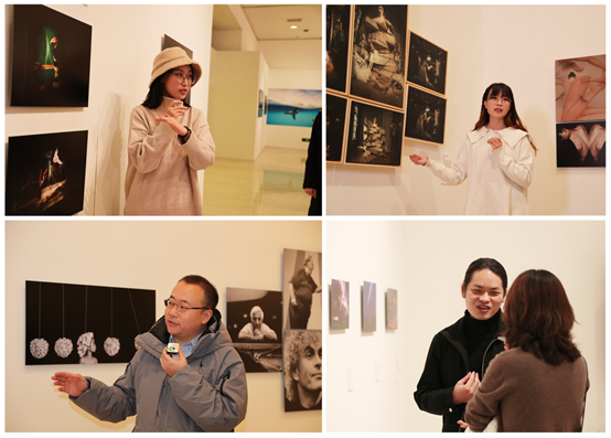 本屆大展在展陳方式上也做了新的探索。主視覺色彩豐富,充滿動感,表現(xiàn)力、感染力強。對于展覽空間進行分主題分區(qū)規(guī)劃,既有大開大合的大氣概,又有異彩紛呈的小景觀,可謂移步換景。每組作品根據(jù)主題、題材、風格的不同進行了特色呈現(xiàn),多種方式互為補充,豐富活潑。藝術(shù)微噴、濕版工藝、作品集、互動裝置等展示靜態(tài)攝影作品,120寸8K超高清顯示器展示短視頻作品,科技與藝術(shù)完美結(jié)合;VR全景數(shù)字展廳線上展示,隨時隨地觀看互動。這些創(chuàng)新既適應(yīng)了新媒體環(huán)境下攝影的發(fā)展變化,也更契合青年人思維活躍、個性獨立的特點。入選作者史嘯、吳增磊、孟睿涵、康磊、宋詞、劉暢、王偉等參加了開幕活動。開幕活動后,北京攝影函授學院教務(wù)長袁欽玲對大展進行了在線導覽。