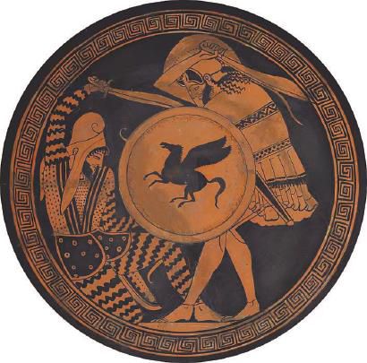 搏斗中的波斯戰(zhàn)士(左)與希臘重甲步兵 基里克斯陶杯,公元前5世紀(jì)