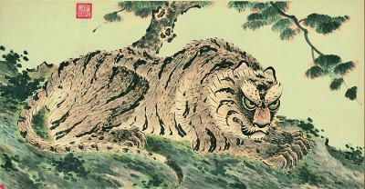 虎,雖貴為百獸之尊,但離我們的生活并不遙遠,是古今中外美術(shù)創(chuàng)作的重要主題。通過對以上作品的分析,我們大致可以看出人類對于虎的認識是有一個逐漸變化的過程的。早期社會,生產(chǎn)力低下,人類畏懼自然,所以虎的形象被抽象成神獸符號以佑護人類;隨著人類對大自然認識的不斷深入,征服自然的能力提高之后,虎的形象也逐漸演變?yōu)橥癸@皇權(quán)和宗教力量的附屬品;今天,人與自然開始達成動態(tài)的和諧統(tǒng)一,在此過程中,虎與人類的距離不斷被拉近。但是,不管如何變化,虎作為中國傳統(tǒng)文化中一個重要的符號和精神象征,在我們心中始終都代表著勝利與榮耀,象征著勇敢與無畏,護佑著平安與吉祥。