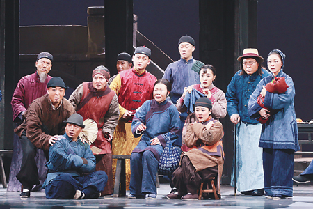 第二,舞臺呈現(xiàn)具有高度的綜合性、有機性、整體性。許多扇大門的推拉組合,包括色調(diào)、音樂、燈光等都和情節(jié)人物相得益彰。不同場景的調(diào)度、不同人物命運的造型安排,在舞臺上形成了有機整體,使作品具有了很高的文化品位。整臺演出具有大團(tuán)氣象,尤其是主演李晶花善于用聲音來抒情,用聲音來塑造人物,爆發(fā)力很強。音樂、作曲包括配器都貼近劇情,既有北方的壯烈,也有南方的清新,二者融為一體又交相生輝。