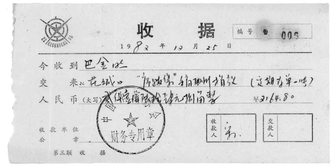 巴金曾叮囑主持四川人民出版社工作的侄子李致:“以后不要再給我寄稿費了。今后所有我的著譯的稿酬,新出的書如《回憶與探索》和十卷本《選集》的全部稿費一律贈現(xiàn)代文學館,已出各書如有再版的機會,稿費也送給文學館(蕭珊的譯著也包括在內(nèi))。以后請一定照辦。”[43]在1985年和1986年巴金給文學館楊犁館長的信中也多次談到捐贈稿費的事情,[44]巴金故居藏有一份“巴金同志捐款清單”,內(nèi)容如下: