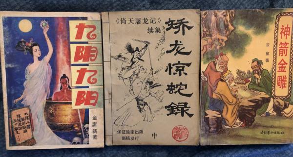 在我翻看挑選得起勁時(shí),老板娘突然說了句:“有幾本錯(cuò)版的書要不要?很難找的!”我問:“什么是錯(cuò)版?”老板娘便解釋給我聽,以前的書商為了那些在香港、臺(tái)灣地區(qū)流行的武俠作家進(jìn)大陸市場(chǎng)賣得好,把他們名字大部分改為了金庸、古龍、梁羽生,比如司馬翎是上世紀(jì)八十年代被改最多的臺(tái)灣作家,還有蕭逸、臥龍生、陳青云、柳殘陽(yáng)、上官鼎也多是被改名引進(jìn)的,這些錯(cuò)版的書在后來的1990年代因?yàn)榘鏅?quán)正規(guī)化后便絕版不再印制了,如今卻成了武俠愛好者搜尋收藏的對(duì)象。另外,還有取名“金庸新”、“金庸巨”甚至“金庸著”之類騙讀者掏錢的,就像現(xiàn)在許多商業(yè)大片被抄襲翻拍成的B級(jí)片,當(dāng)然也有金童改編《射雕英雄傳》的前傳后傳《神箭金雕》與滄浪客的續(xù)寫金庸古龍系列之類的良心之作。