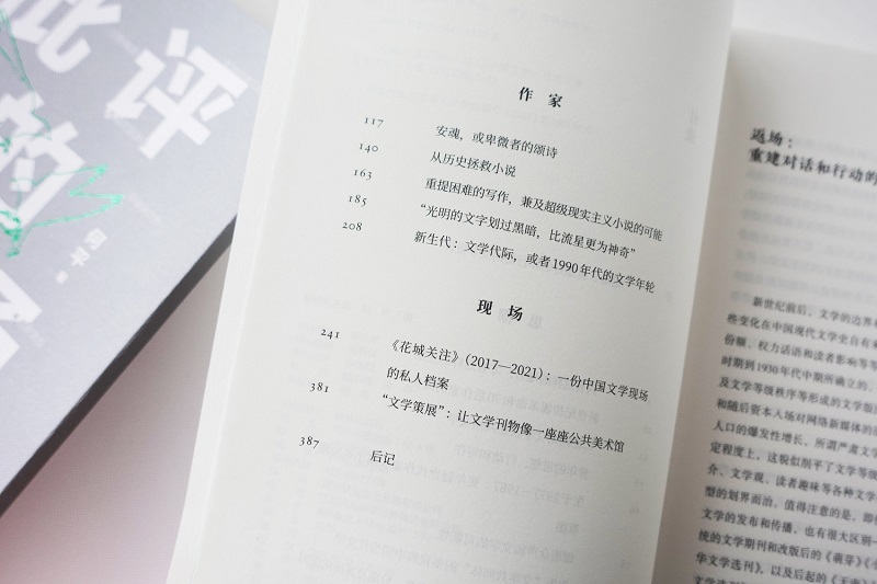 何平說:“編選這本評(píng)論集前后有接近一年的時(shí)間,當(dāng)時(shí)曾想給這些文字一個(gè)名字——'有文學(xué)的生活',以紀(jì)念這些年賦予我豐富文學(xué)生活的朋友們,感謝他們的愛與熱情?!焙纹较胱雠u(píng)語源意義上“能批評(píng)的人”,在現(xiàn)實(shí)中國生活并且進(jìn)行文學(xué)批評(píng)實(shí)踐。批評(píng)家扎根文學(xué)現(xiàn)場(chǎng),參與文學(xué)生產(chǎn)和文學(xué)史建構(gòu)是中國現(xiàn)代文學(xué)批評(píng)的重要傳統(tǒng)。何平希望:“'批評(píng)的返場(chǎng)',并不是退出學(xué)院,而是實(shí)踐學(xué)院文學(xué)批評(píng)和文學(xué)現(xiàn)場(chǎng)對(duì)話的可能性。”