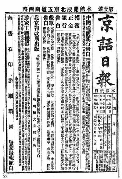 《京話日報》創(chuàng)刊號 資料圖片