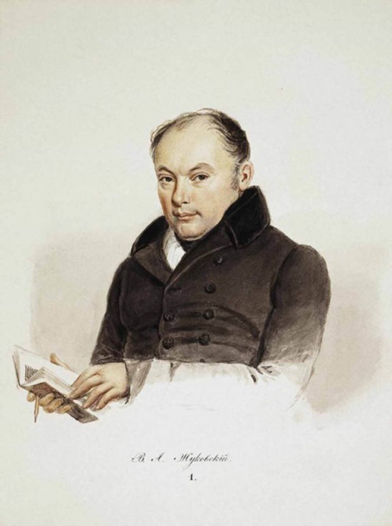俄國(guó)浪漫主義的奠基人為杰出詩(shī)人、翻譯家茹科夫斯基。他提出,詩(shī)歌的使命在于教育人,喚起人們的崇高情感和對(duì)美好事物的向往,譴責(zé)現(xiàn)實(shí)生活中的自私貪婪和迷戀升官發(fā)財(cái)?shù)壬鐣?huì)陋習(xí),崇尚純真友誼以及責(zé)任感、愛(ài)國(guó)熱忱等。他的這些新思想、新觀念在其創(chuàng)作的敘事詩(shī)《柳德米拉》(1808)、《斯維特蘭娜》(1813)、《俄國(guó)軍營(yíng)歌手》(1812)等作品中得以充分展現(xiàn)。被稱(chēng)為“十二月黨人詩(shī)人”的雷列耶夫則認(rèn)為茹科夫斯基的作品帶有幻想性、不確定性和模糊性等神秘主義色彩。他一面號(hào)召作家們竭力在作品中表現(xiàn)崇高的情感、思想和永恒的真理,一面率先垂范,于1825年先后創(chuàng)作了洋溢著崇高獻(xiàn)身精神和政治熱情的抒情組詩(shī)《沉思》和長(zhǎng)詩(shī)《沃伊納羅夫斯基》、《納里瓦伊科》等,表現(xiàn)出“為喚醒沉睡的俄羅斯人”而在所不惜的獻(xiàn)身精神。