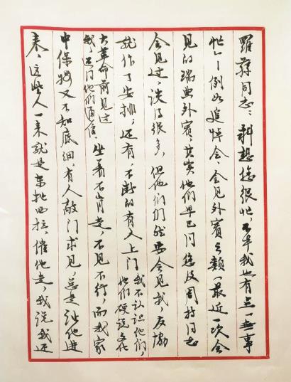 年近遲暮搬進(jìn)后圓恩寺胡同的茅盾已然成了眾人文中口中的茅公,寬敞疏朗的四合院內(nèi)的生活日漸單一。無官身輕,茅盾也不事花草不近古玩,甚至拒絕體育鍛煉,每天除了在后院居室內(nèi)踱步便是讀書寫字,他開始了人生最后一部大書的撰寫,便是始終念念不忘的回憶錄。展覽中最后部分也陳列出茅盾寫作回憶錄的部分手跡。只是這時(shí)的稿紙格寬行疏,書寫者也一改傳統(tǒng)變成了硬筆橫向書寫。晚年茅盾視力下降,左眼失明,右眼視力僅有0.03,再加身體衰弱,腕力不逮,漸已無法繼續(xù)握毛筆寫字。對于茅盾來說,這不過是形式上的變化而已,活到老寫到老的倔強(qiáng)依然見出老派文人心底的幾許執(zhí)著。茅盾一生筆耕硯田,作品全集達(dá)洋洋四十二大卷,在中國現(xiàn)代作家的作品數(shù)量名列前茅,留存下一個(gè)著作等身的文學(xué)遺產(chǎn)和精神財(cái)富。展覽雖有玻璃板相隔,觀者卻無不感到歷久彌新的手札文本上墨香四溢,這些泛黃的手稿正如泛黃的書卷,歷經(jīng)歲月沉淀淘洗抹不掉的是一紙紙流芳墨韻,雋秀娟麗的字跡下是茅盾溫文爾雅的儀態(tài)和清雅不俗的修為。手寫時(shí)代的結(jié)束令作家手稿愈見珍稀,引發(fā)今人對文字和文學(xué)的敬畏心。老派文人們的一筆一畫,一字一句書寫了歷史,也留存了生機(jī)。見字如晤,展信舒顏,與作家的隔空對望,已使手稿有了不少動(dòng)人詩情。